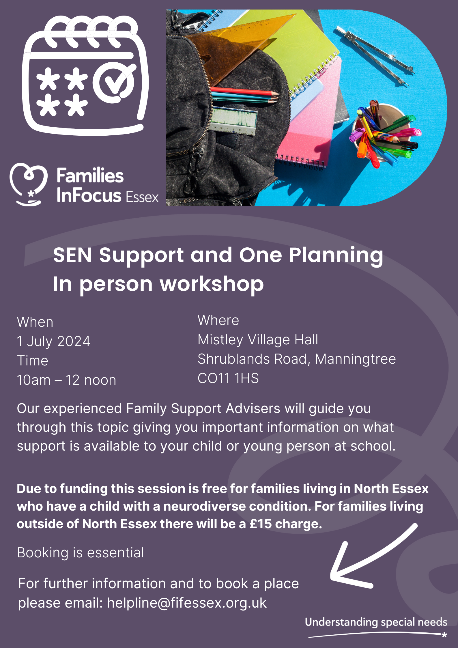 In person SEN support and one planning workshop. During the session our professionals will cover what support is available for your child or young person in school.
